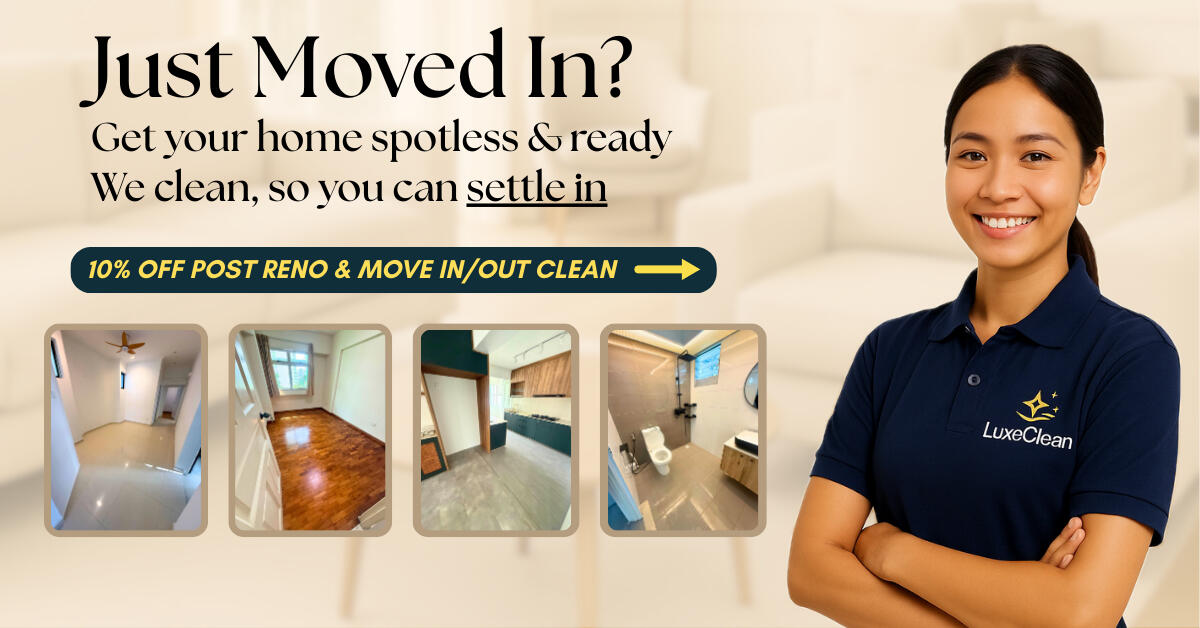LuxeClean delivers professional, top-to-bottom deep cleaning for homes that just finished renovations or are getting ready for handover.We bring a fully equipped team, handle every room with precision, and leave your space 100% dust-free, sparkling, and ready to live in.Trusted by homeowners across Singapore.